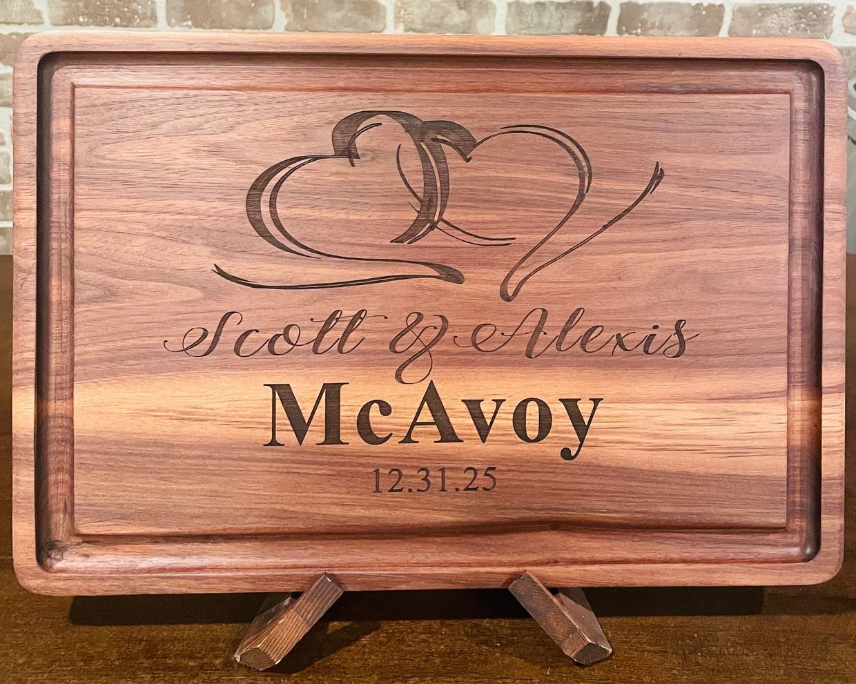 This exquisite solid walnut handcrafted 18" x 12" x 1" cutting /serving board is a great way to show Thanks and Appreciation to Customers, Employees, Friends, and Family!